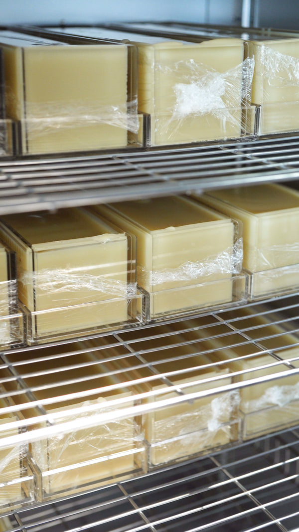 型から外してカットしたあと、風通しの良い場所でおよそ4週間かけて乾燥させます。